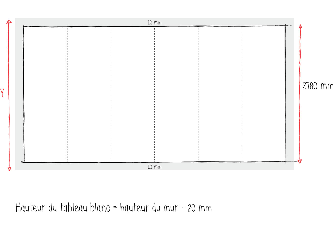 Mesurez le mur de gauche à droite à plusieurs endroits. Soustrayez 10 mm de la largeur, cette petite marge garantit que votre mur en feutre PET s’ajustera parfaitement, même si le mur présente de légères irrégularités. Notez la plus petite largeur mesurée, y compris la déduction de 10 mm, sur le formulaire de mesure.